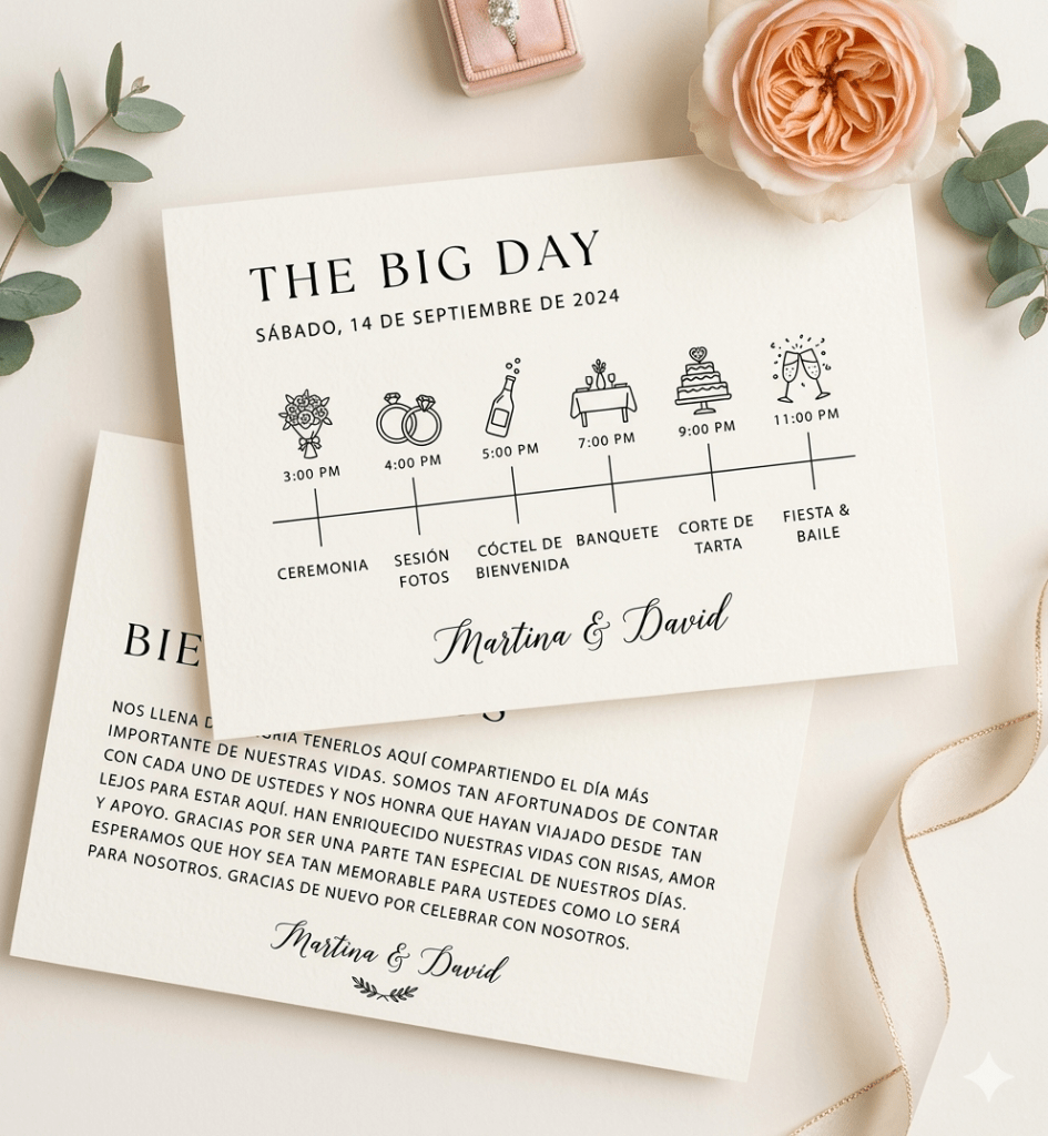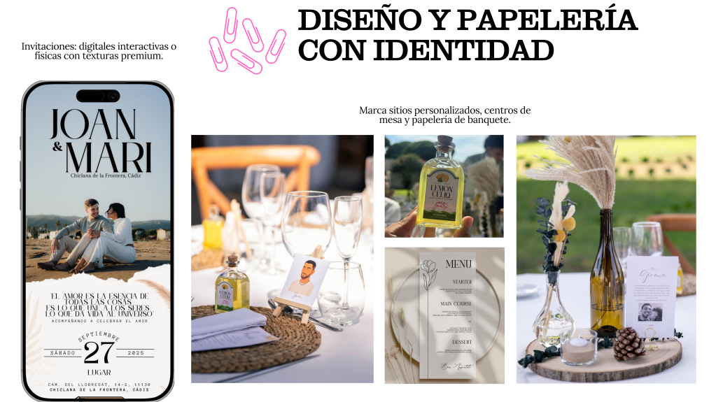 Aquí encontrarás mis paquetes de Wedding Content Creator para que tu día brille en redes al instante. ¡Pero eso no es todo! También diseño los detalles que hacen que una boda tenga alma.